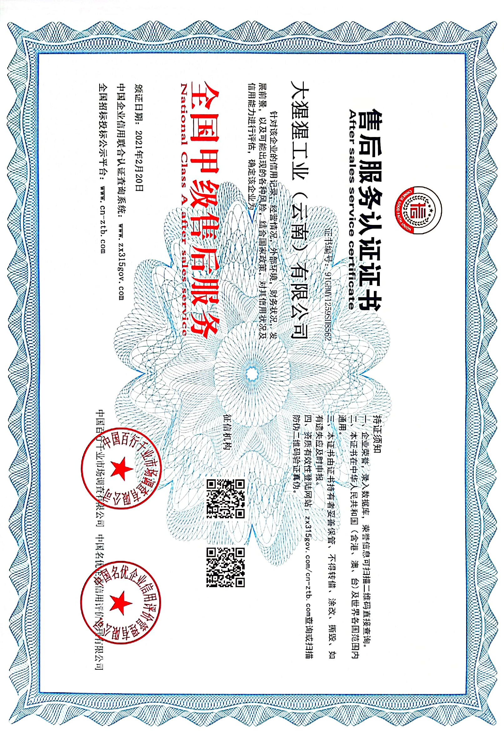 售后服务认证证书