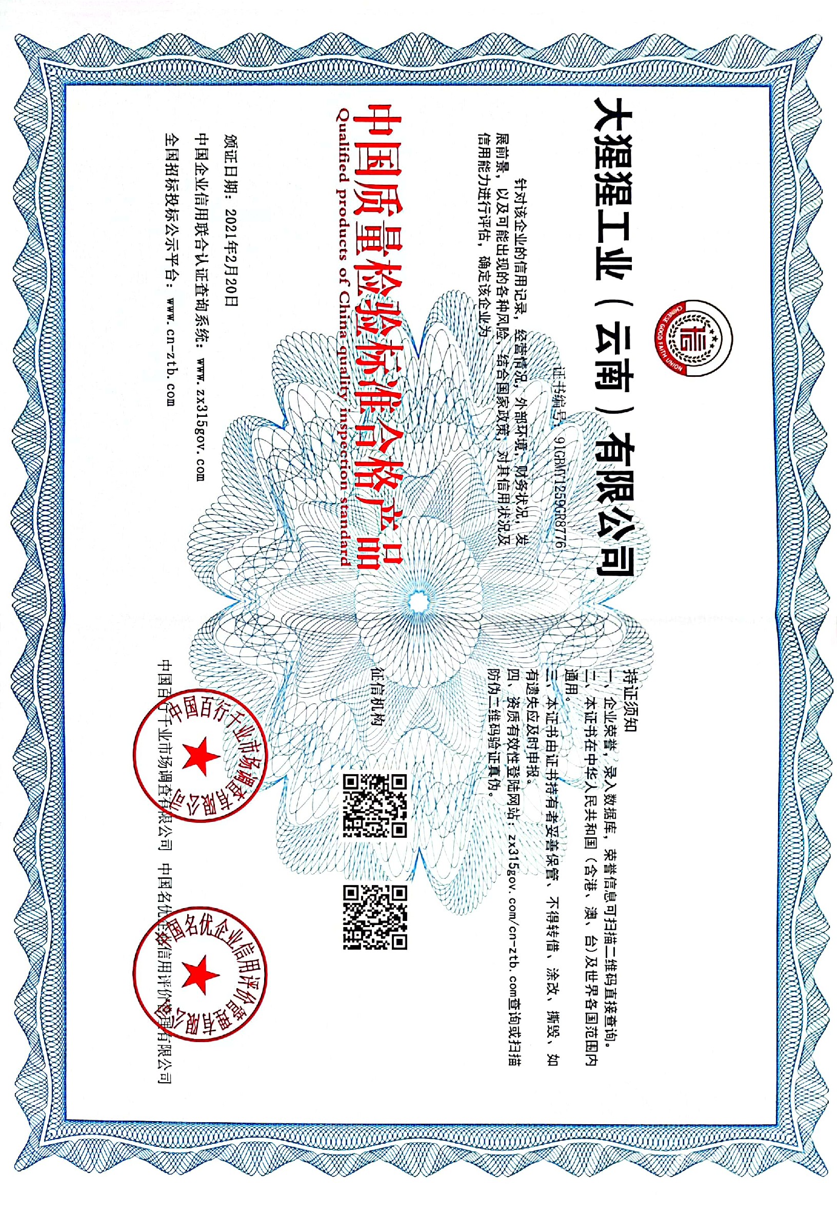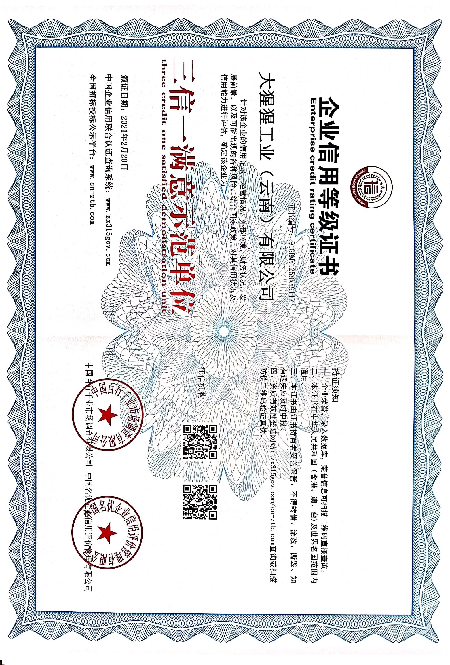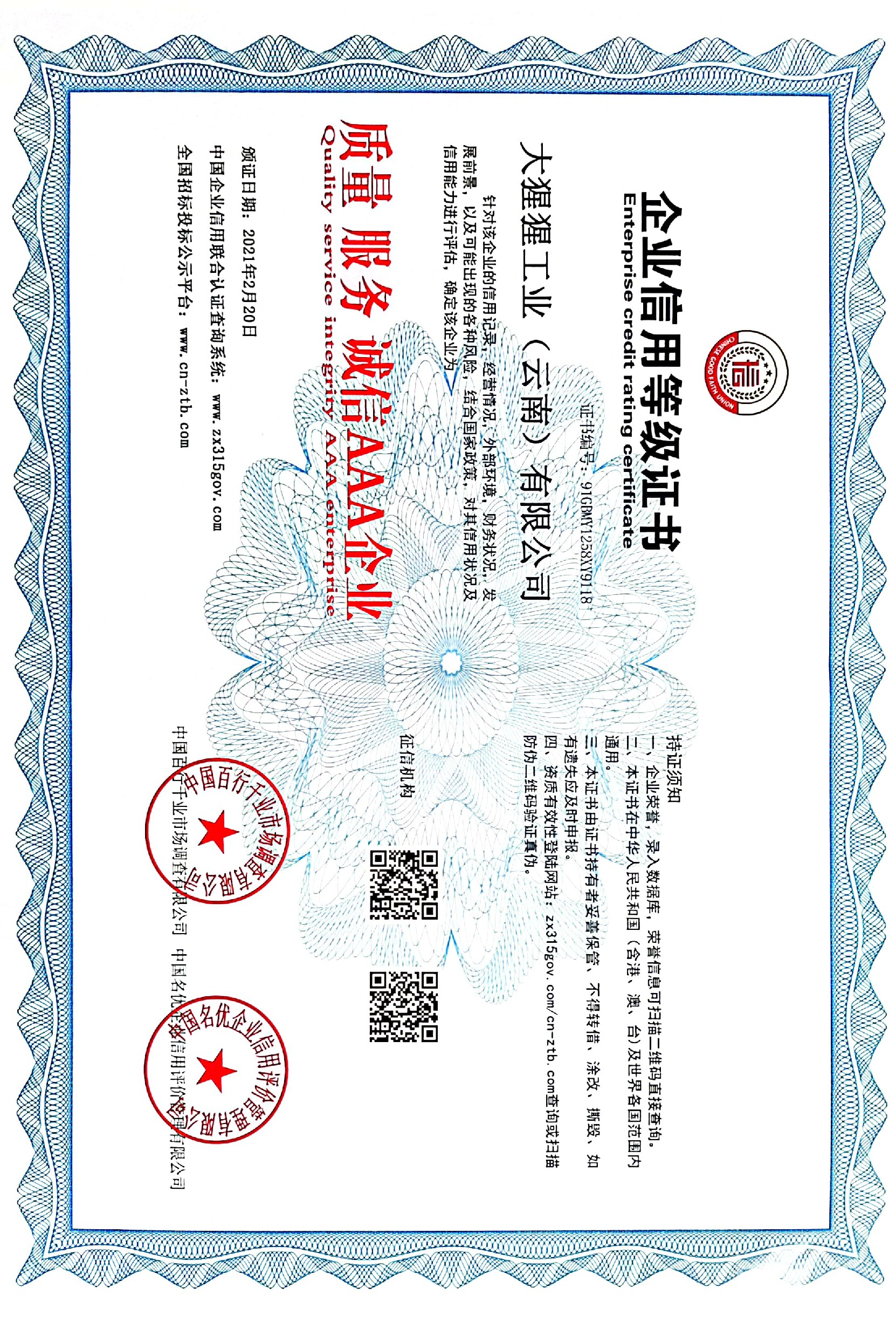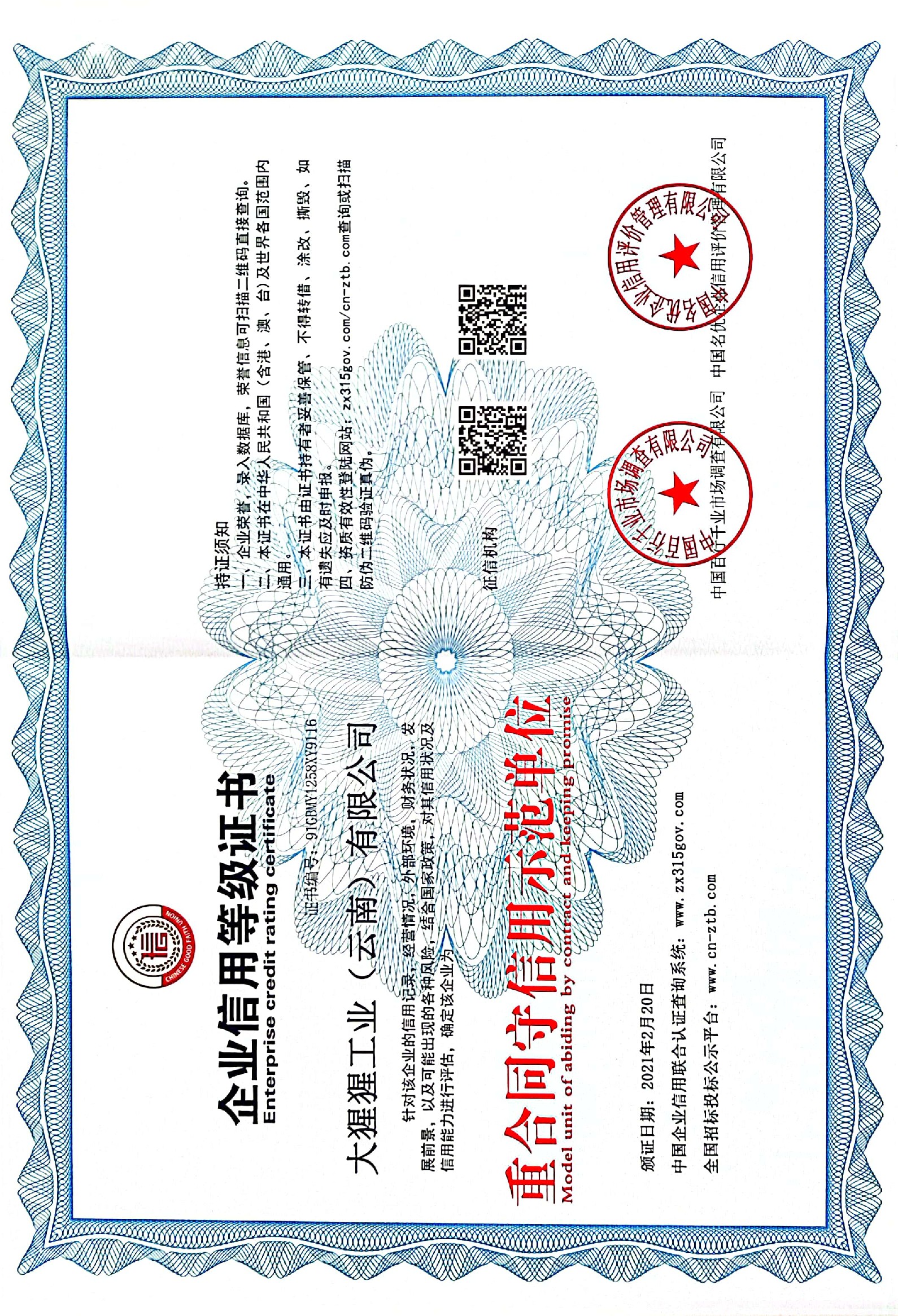 企业信用等级证书